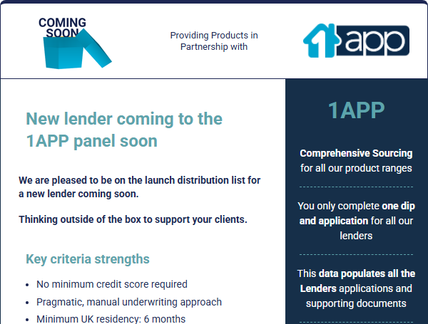 We are pleased to be on the launch distribution list for a new lender coming soon. Thinking outside of the box to support your clients. Key criteria strengths Self-employed *Subject to AML approval More to follow, watch this spacefor the launch date. Can we help? Just ask our team what we can do to support […]